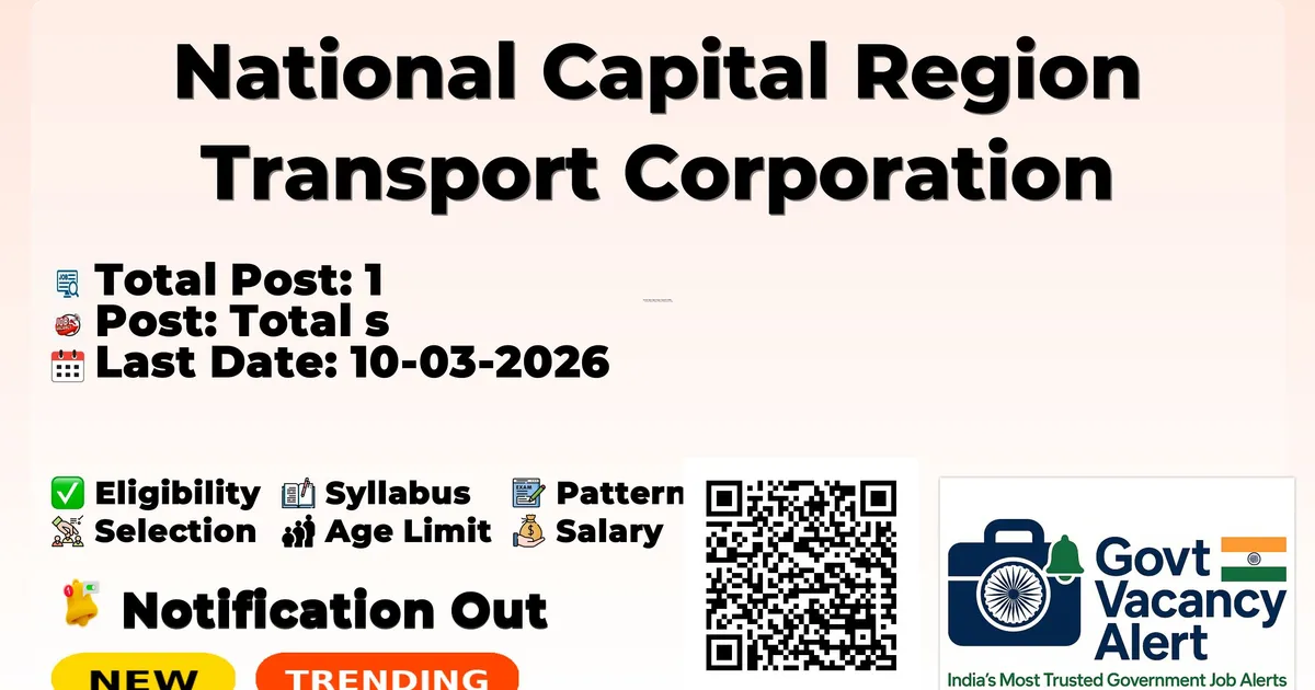 Company Name National Capital Region Transport Corporation (NCRTC) Post Name Advisor No of Posts 1 Salary Rs. 76,050/- Per Month Qualification Graduate Age Limit 70 years Notification Date 10-02-2026 Last Date for Apply 10-03-2026 Official Website www.ncrtc.in