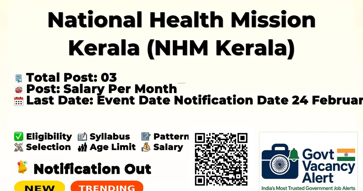 National Health Mission Kerala (NHM Kerala) has officially released a notification for the recruitment of 3 DEO, Junior Consultant and More Posts. This recruitment drive offers a great opportunity for candidates looking for government jobs. Interested and eligible candidates can apply online through the official website. The last date to apply online is 05-03-2026, so applicants are advised to submit their forms well before the deadline to avoid last-minute issues.