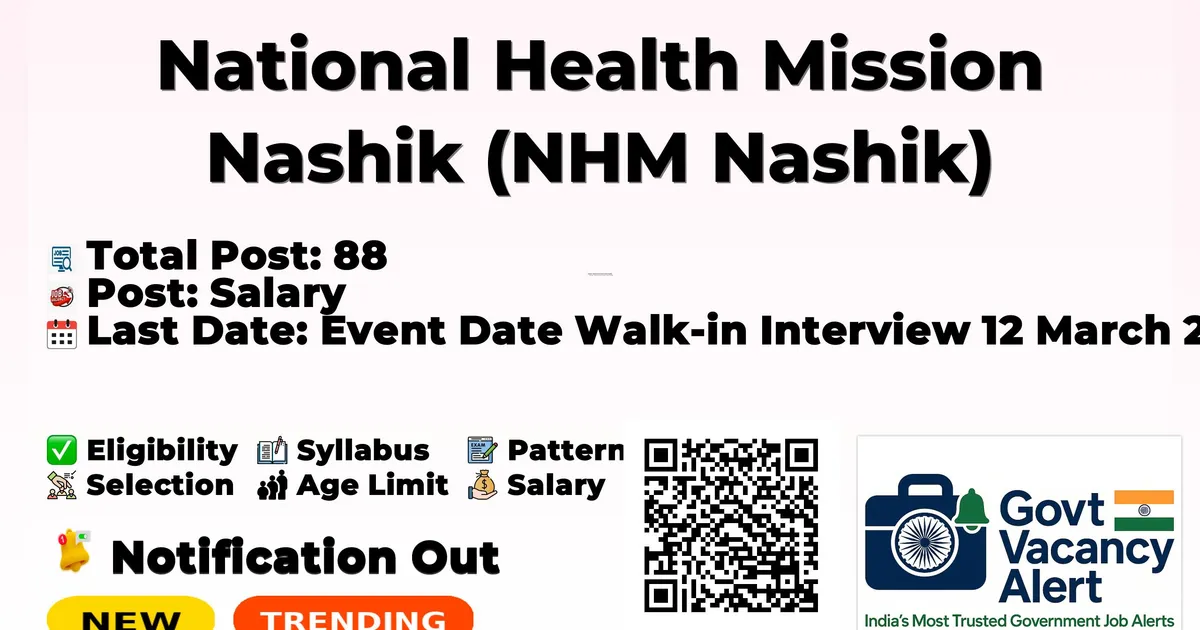 National Health Mission Nashik (NHM Nashik) Recruitment 2026: National Health Mission Nashik is conducting a Walk-in Interview for 88 Various posts. This recruitment provides an excellent opportunity for eligible candidates to attend the interview directly without any prior online application.