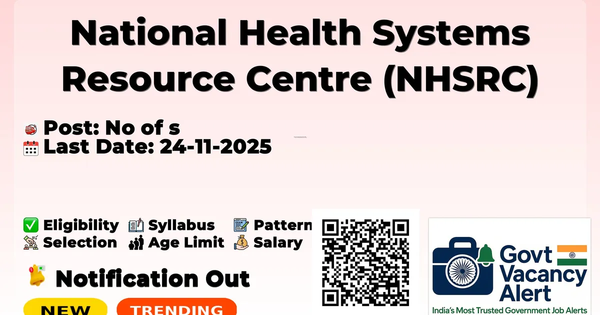National Health Systems Resource Centre (NHSRC) has released an official notification for the recruitment of Secretarial Executive, IT Division Posts. Interested and eligible candidates can apply Online through the official NHSRC website. The last date to submit the application form is 24-11-2025. In this article, you’ll find the NHSRC Secretarial Executive, IT Division Posts recruitment details, including eligibility criteria, age limit, salary structure, selection process, application steps, and direct links to the official notification and Online application form.