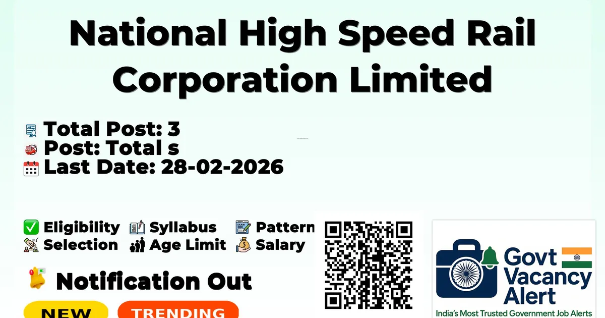 National High Speed Rail Corporation (NHSRCL) has released an official notification for the recruitment of 03 Assistant Manager Posts. Interested and eligible candidates can apply Online through the official NHSRCL website. The last date to submit the application form is 28-02-2026. In this article, you’ll find the NHSRCL Assistant Manager Posts recruitment details, including eligibility criteria, age limit, salary structure, selection process, application steps, and direct links to the official notification and Online application form.