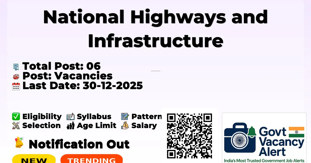 Company Name National Highways and Infrastructure Development Corporation (NHIDCL) Post Name Deputy Manager No of Posts 06 Salary Rs. 50000-160000 Qualification Any Bachelors Degree Age Limit Not exceeding 34 years Start Date for Apply Online 01-12-2025 Last Date for Apply Online 30-12-2025 Official Website nhidcl.com