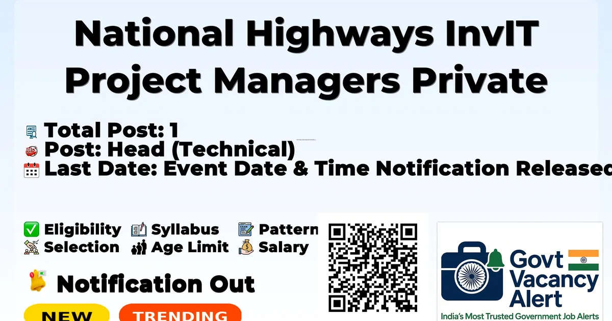 National Highways InvIT Project Managers Private Limited (NHIPMPL), a subsidiary of NHAI, is recruiting 1 senior technical professional for the position of Head (Technical) on a fixed-term contract basis for 2 years, extendable based on performance and organizational requirements.