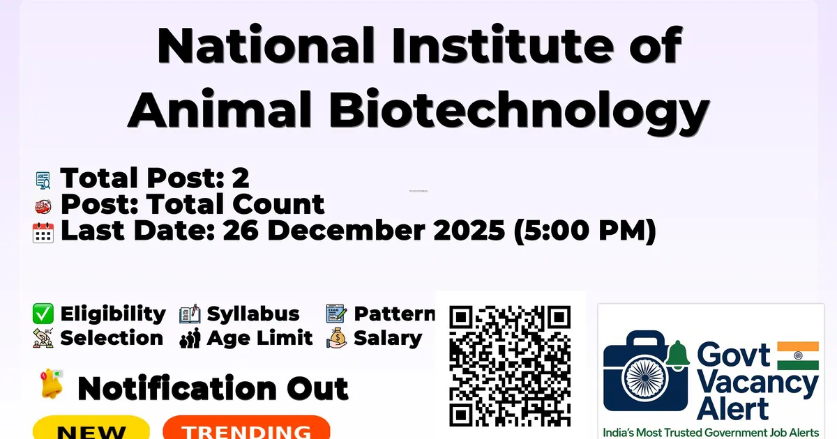 National Institute of Animal Biotechnology (NIAB) has released an official notification for the recruitment of 02 Senior Research Fellow, Senior Project Assistant Posts. Interested and eligible candidates can apply Offline through the official NIAB website. The last date to submit the application form is 26 December 2025. In this article, you’ll find the NIAB Senior Research Fellow, Senior Project Assistant Posts recruitment details, including eligibility criteria, age limit, salary structure, selection process, application steps, and direct links to the official notification and Offline application form.