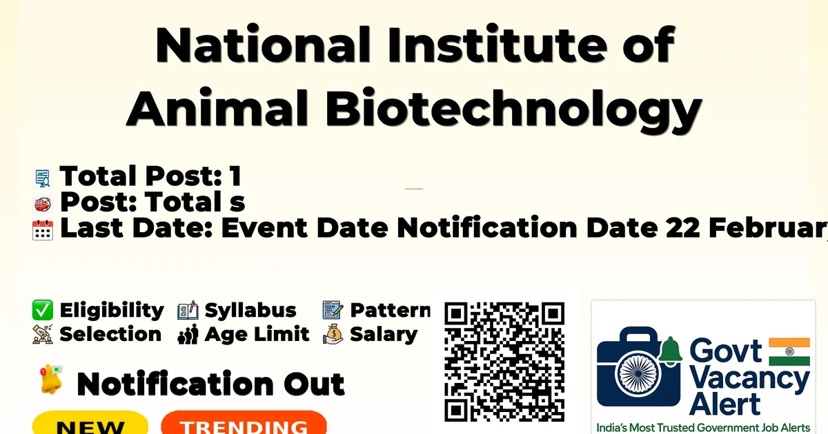 National Institute of Animal Biotechnology (NIAB) has released an official notification for the recruitment of 1 Technical Assistant Posts. Interested and eligible candidates can apply Online through the official NIAB website. The last date to submit the application form is 16-03-2026.