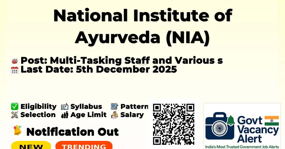 National Institute of Ayurveda (NIA) Multi-Tasking Staff and Various Posts Recruitment 2025. — Multi-Tasking Staff and Various Posts