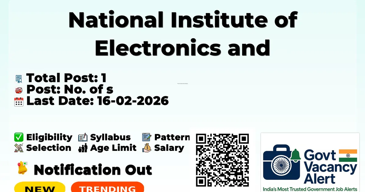 Company Name National Institute of Electronics and Information Technology (NIELIT) Post Name Accounts Assistant No of Posts 1 Salary Rs. 30,000 per month (consolidated) Qualification B. Com with CA Inter / MBA (Finance) or M.Com Advt No NIELIT(J)/R/04/2026 Notification Date 23-01-2026 Last Date for Apply 16-02-2026 Apply Mode Offline Job Type Contract Official Website https://www.nielit.gov.in/srinagar/index.php