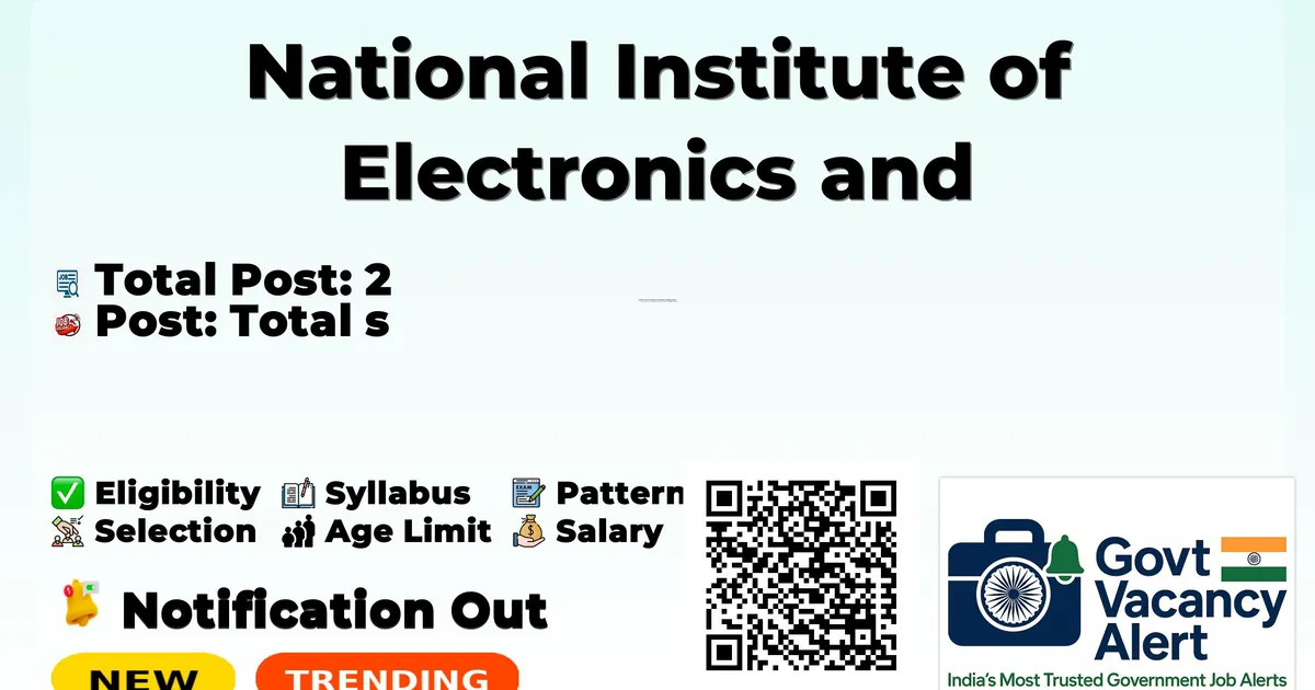 National Institute of Electronics and Information Technology (NIELIT) has officially announced a Walk-in Interview for the recruitment of 2 Consultant Posts. This walk-in drive offers a great opportunity for candidates looking for government jobs. Candidates with B.Tech/B.E. in Computer Science/IT/Electronics/Electronics & Communications, Graduate qualification can directly attend the interview on .