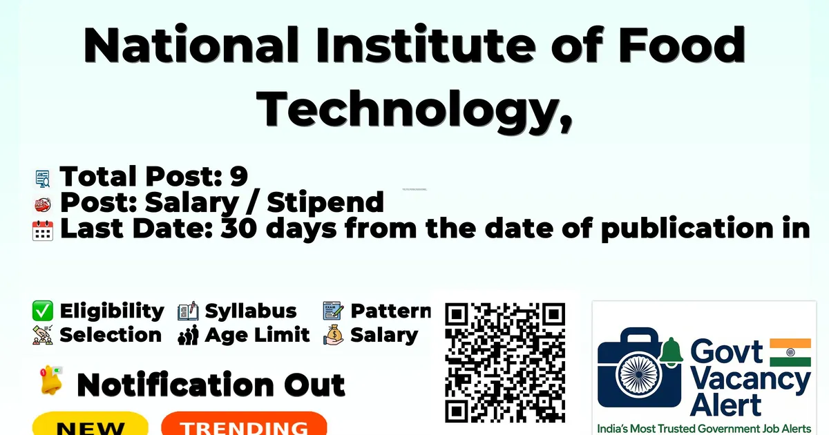 Company Name National Institute of Food Technology, Entrepreneurship and Management, Thanjavur (NIFTEM-T) Post Name Associate Professor, Assistant Professor No of Posts 9 Advt No A/217/2026 Salary Rs.57,700 – 2,17,100/- Per Month Qualification Masters Degree / Doctoral Degree Age Limit Maximum Age: 47 years Notification Date 01-02-2026 Last Date for Apply 30 days from the date of publication in Employment News Apply Mode Online Job Type Full Time Official Website www.niftem-t.ac.in