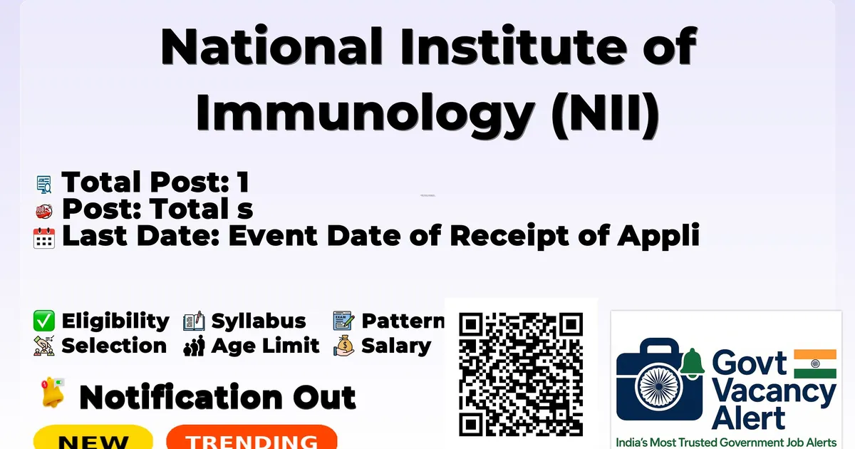 National Institute of Immunology (NII) has released an official notification for the recruitment of 1 Junior Research Fellow (Project)/Project Associate-I Posts. Interested and eligible candidates can apply by sending their application via Email. The last date to send the application email is 12-03-2026.