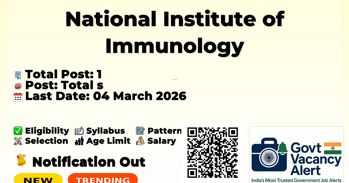 National Institute of Immunology (NII) has officially released a notification for the recruitment of 1 Research Associate-I Posts. This recruitment drive offers a great opportunity for candidates looking for government jobs. Interested and eligible candidates can apply online through the official website. The last date to apply online is 04-03-2026, so applicants are advised to submit their forms well before the deadline to avoid last-minute issues. In this article, you will find complete details about Research Associate-I Recruitment 2026, including vacancy details, eligibility criteria, age limit, salary, selection process, application steps, and important links. Advertisement Company Name National Institute of Immunology Post Name Research Associate-I No of Posts 1 Salary Rs. 58,000/- + 27% HRA Per Month Qualification PhD degree in any field of Biological Sciences with at least 1 research publication in standard refereed journal Last Date 04-03-2026 Walk-in Date 06-03-2026 Apply Mode Online Job Type Contract Trending Govt Jobs UPSC CSE Online Form 2026 DSSSB 911 AE, JE & More Online Form 2026 RRB 22000 Group D Online form 2026 MCL 677 Various Vacancies Online Form 2026 MMRDA 235 AE, JE and More Posts Online Form 2026 Candidates should download and read the NII Jobs 2026 notification PDF carefully to check vacancy details, eligibility, age limit, and application instructions. The notification also includes important dates and selection process details. The direct download link is available in the Important Links section below. Download NII Research Associate-I Job 2026 Notification PDF Post Name Total Posts Research Associate-I 1 Total 1 Research Associate-I: Candidates must possess a PhD degree in any field of Biological Sciences. Additionally, they must have at least one research publication in a standard refereed journal as listed in the Journal Citations Reports (JCR). No application fee is mentioned in the official notification. Please refer to the official notification for age limit details. Research Associate-I: Rs. 58,000/- per month plus 27% HRA (As per DST OM dated 26.06.2023). Event Date Last date for applying the position 04 March 2026 Date of Walk-In-Interview (Online Mode) 06 March 2026 Online Screening of Applications Online Walk-in Interview Candidates who meet the eligibility criteria can apply online for the NII Research Associate-I Recruitment 2026. Applications must be submitted online on or before 04-03-2026. To apply directly, use the Apply Online link provided in the Important Links section. Alternatively, candidates may visit the official website of NII to complete the application. Fill out the application form carefully with correct personal, educational, and contact details. Upload required documents such as photograph, signature, and certificates in the prescribed format. Pay the application fee online, if applicable. Review all details carefully before submitting the form. Take a printout or save a copy of the submitted application for future reference. Link Description Link Official Notification PDF Click here Apply Online Click here Official Website Click here