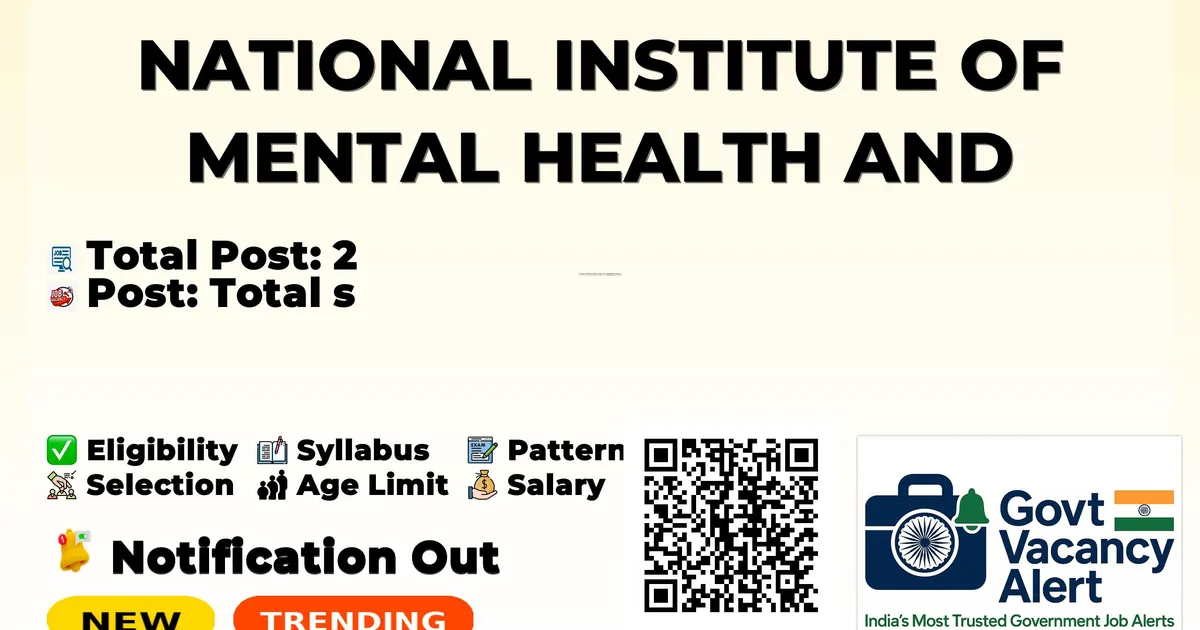 Join Us on Add us on WhatsApp Telegram Arattai Trending Govt Jobs Nainital Bank CSA Clerk PO SO Online Form 2025 DRDO CEPTAM 11 764 STA-B, Tech-A Online Form 2025 SSC 25487 GD Constable Online Form 2025 Bombay High Court 2381 Various Vacancy Online Form 2025 KVS and NVS 14967 Teaching and Non Teaching Online Form 2025 Advertisement National Institute of Mental Health and Neuro Sciences (NIMHANS) Recruitment 2025 for 02 posts of Project Research Scientist I And Project Technical Support III. Candidates with M.Sc Can attend the walkin. The Walk-in on 23-12-2025. For detailed information please visit NIMHANS official website, nimhans.ac.in. Company Name NATIONAL INSTITUTE OF MENTAL HEALTH AND NEUROSCIENCES (NIMHANS) Post Name Project Research Scientist - I (Non-Medical) & Project Technical Support - III No of Posts 2 Salary INR 28,000 to INR 56,000 + 30% HRA per month Qualification Master of Science in Clinical Psychology/Neuropsychology/Biotechnology/Microbiology/Chemistry Age Limit Maximum 35 years Start Date for Apply 09/12/2025 (Notification date) Walk in Date 23/12/2025 Official Website nimhans.ac.in Post Name Total Posts Project Research Scientist - I (Non-Medical) 1 (One) Project Technical Support - III 1 (One) Total 2 Qualifications & Essential qualifications: Project Research Scientist - I (Non-Medical): Master of Science in Clinical psychology / Neuropsychology. Project Technical Support - III: Master of Science in Biotechnology / Microbiology / Chemistry. Desirable: Project Research Scientist - I: Experience in clinical assessment of patients with schizophrenia, cognitive functions assessment, and working in clinical research with randomized controlled trials. Project Technical Support - III: Hands-on experience and expertise in blood sample processing, storage, PBMC isolation, flow-cytometry, and liquid chromatography. Experience: Experience required in specific areas for both posts as listed under desirable experience/essential qualification depending on interpretation. Project Research Scientist - I (Non-Medical): ₹56,000 + 30% HRA per month. Project Technical Support - III: ₹ 28,000 + 30% HRA per month. Maximum age limit for both posts is 35 years. Event Date Notification Date 09/12/2025 Date & time of Walk-in-Selection 23/12/2025 at 10:30 A.M. Registration Time (Half an hour before start) 23/12/2025 at 10:00 A.M. Selection is through a Walk-In-Selection process which may include a written/skill test followed by an interview. Candidates must register their names half an hour before the commencement of the test. Candidates should bring their Resume, original Marks Cards, and Testimonials in original, as well as a set of photocopies. No TA/DA will be paid for attending the selection process. The posts are on a contract basis for an ICMR-funded project. The initial appointment duration is 6 months, extendable depending on performance. Candidates working in other projects (Extramural/Intramural) in NIMHANS need to provide a NOC from their current Principal Investigator. Candidates meeting the eligibility criteria are advised to appear directly for the Walk-In-Selection. Venue: Board Room & Exam Hall, 4th Floor, NBRC Building, Opposite To Library, NIMHANS, Bengaluru – 560 029. Date and Time: December 23, 2025, at 10:30 A.M. (Registration at 10:00 A.M.). Candidates must bring their original documents (Resume, Marks Cards, Testimonials) and one set of photocopies for verification. Important Links Notification Click here Official Website Click here Join Arattai Channel Click Here Sarkari Result Click Here Join Telegram Channel Click Here Download Mobile App Click Here Join WhatsApp Channel Click Here Follow Us on Add us on Google News Twitter Jobs In Karnataka Bagalkot Bangalore Belagavi Belgaum Bellary Bidar Bijapur Karnataka Chamarajanagar Chikkaballapura Chikmagalur Chitradurga Dakshina Kannada Davanagere Dharwad Gadag Gulbarga Hassan Haveri Hubli Kodagu Kolar Koppal Mandya Mangalore Mysore Raichur Ramanagara Shimoga Tumkur Udupi Uttara Kannada Vijaya Nagara Yadgir Also Read SSC Recruitment 2025 - 25000+ Constable, Rifleman Vacancies Across India - 10TH Pass - Rs. 21,700 - 69,100 Salary - Apply Now SBI SO Recruitment 2025 - 900+ Vacancies - Across India - Graduate Pass - Apply Now RRB Recruitment 2025 - 2500+ JE (Junior Engineer) Vacancies - 35400 Monthly Salary - Apply Now Jobs By Education 10TH Jobs› 8TH Jobs› 12TH Jobs› Diploma Jobs› ITI Jobs› B.Tech/B.E Jobs› B.com Jobs› Any Graduate Jobs› Any Post Graduate Jobs› EMRS Admit Card 2025 Out UPSC 451 CDSI Exam 2026 RRB Group D Admit Card 2025 UPSC NDA & NA Exam 2026 OICL 300 AO Online Form 2025 RRB NTPC UG CBT 2 Exam City Intimation Slip 2025 SSC 25487 GD Constable Online Form 2025 CG Police Constable Result 2025 IAF 144 Apprentice Online Form 2025 1. When is the walk-in selection date for these posts? Ans: The walk-in selection date is December 23, 2025, at 10:30 A.M. 2. How many vacancies are there in total? Ans: There are 2 vacancies in total, one for each post. 3. What is the salary for the Project Research Scientist - I role? Ans: The salary is ₹56,000 + 30% HRA per month. 4. What are the essential qualifications for the Project Technical Support - III role? Ans: A Master of Science in Biotechnology / Microbiology / Chemistry with specific hands-on experience is required. 5. What is the maximum age limit for applicants? Ans: The maximum age limit is 35 years for both positions. Join Us on Add us on WhatsApp Telegram Arattai Trending Govt Jobs Nainital Bank CSA Clerk PO SO Online Form 2025 DRDO CEPTAM 11 764 STA-B, Tech-A Online Form 2025 SSC 25487 GD Constable Online Form 2025 Bombay High Court 2381 Various Vacancy Online Form 2025 KVS and NVS 14967 Teaching and Non Teaching Online Form 2025 Advertisement