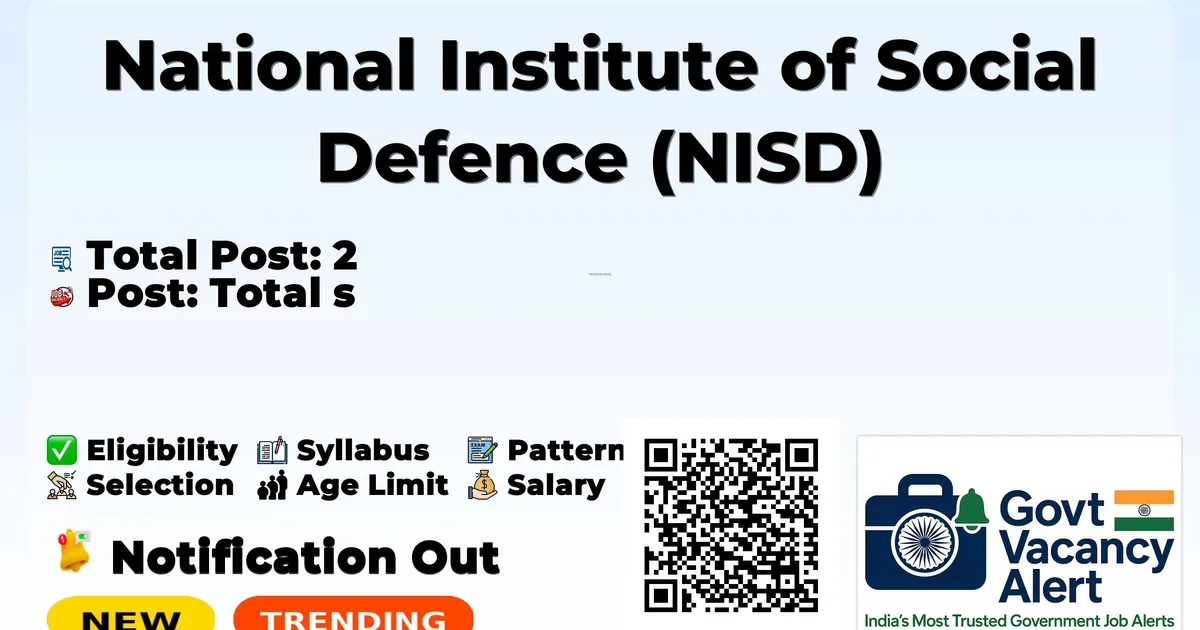 National Institute of Social Defence (NISD) has officially announced a Walk-in Interview for the recruitment of 2 Consultant Posts. This walk-in drive offers a great opportunity for candidates looking for government jobs. Candidates with Graduate in Commerce from a recognized university, At least 3 years post-qualification experience in Government Accounts, Computer proficiency (MS Word, Excel, Power Point, Web surfing) qualification can directly attend the interview on 18-03-2026. Candidates are advised to reach the walk-in venue on time with all original documents, self-attested photocopies, and recent passport-size photographs. In this article, you will find complete details about Consultant Walk-in Recruitment 2026, including vacancy details, eligibility criteria, age limit, salary, walk-in schedule, venue address, and important links. Advertisement Company Name National Institute of Social Defence (NISD) Post Name Consultant (Accounts) No of Posts 2 Salary Rs. 50,000/- - Rs. 60,000/- Per Month Qualification Graduate in Commerce Age Limit Not more than 45 years (Private Sector) & 62 years (Retired Govt. Officials) Walk-in Date 18-03-2026 Apply Mode Walk-in Job Type Contract Candidates should download and read the NISD Jobs 2026 notification PDF carefully to check vacancy details, eligibility, age limit, and application instructions. The notification also includes important dates and selection process details. The direct download link is available in the Important Links section below. Download NISD Consultant Job 2026 Notification PDF Post Name Total Posts Consultant 2 Total 2 Trending Govt Jobs SMC 2295 Clerk, Engineers and More Posts Online Form 2026 BFUHS Punjab Food Safety Officer Online Form 2026 IDBI Bank Junior Assistant Manager Online Form 2026 RRC Western Railway 5349 Apprentice Online Form 2026 Indian Navy Agniveer (MR) Online Form 2026 Graduate in Commerce from a recognized university. At least 3 years post-qualification experience in Government Accounts. Computer proficiency (MS Word, Excel, Power Point, Web surfing). For retired applicants: retired from post of Section Officer or equivalent held for at least five years on regular basis with knowledge of Govt. Rules, CCS (Pension), GFR, Pay Fixations etc. Category Fee General/OBC Nil SC/ST Nil Not more than 45 years (for Private Sector candidates). Not more than 62 years (for Retired Government Officials). Consolidated Rs.50,000/- per month (for candidates with 3-5 years of experience). Consolidated Rs.60,000/- per month (for candidates with more than 5 years of experience). For Retired persons: Salary will be as per DoPT Norms. Event Date Notification Date 05 March 2026 Walk-in Interview 18 March 2026 Walk-in Interview Read the official notification carefully before attending the interview. Candidates must report at the venue as per the reporting time mentioned in the notification. Carry all original documents along with one set of self-attested photocopies such as ID proof, educational certificates, experience certificates (if required), and category certificate (if applicable). Bring the duly filled application form if required in the notification. Verify eligibility criteria before attending the interview. Candidates are advised to reach the venue well in advance to complete registration formalities. Keep extra passport-size photographs for submission if required. Link Description Link Official Notification PDF Click here Official Website Click here