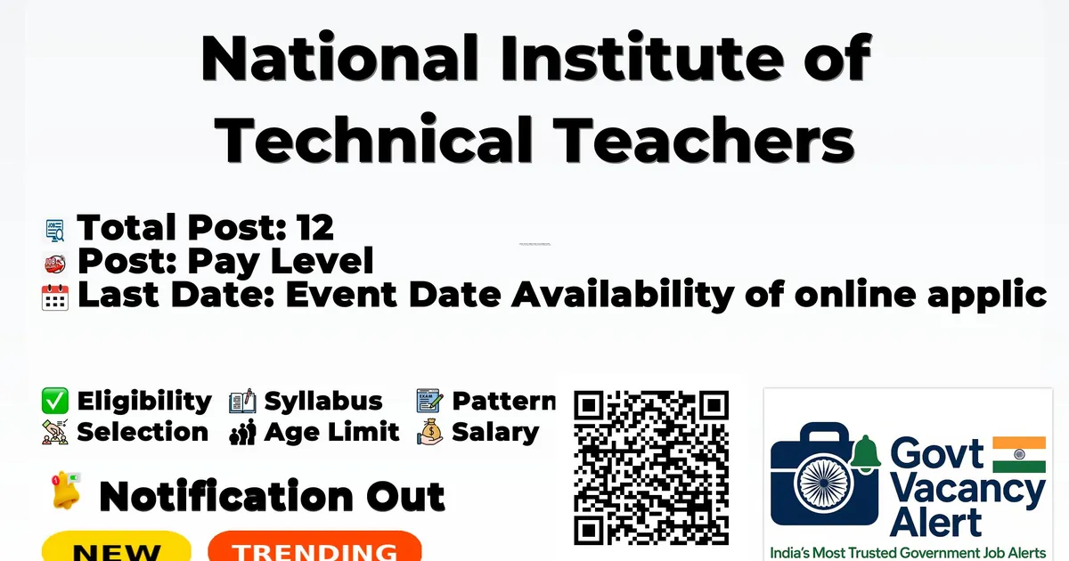 Company Name National Institute of Technical Teachers Training and Research (NITTTR) Post Name Technical Assistant Gr. I & Multi-Tasking Staff No of Posts 12 Advertisement No 07/2025-26 Salary Rs. 35,400 – 1,12,400 (Technical Assistant); Rs. 18,000 – 56,900 (Multi-Tasking Staff) Qualification Bachelor's/Diploma in Civil Engineering (5-8 years experience) / Class X Pass Age Limit 40 years (Technical Assistant); 35 years (Multi-Tasking Staff) Notification Date 14 February 2026 Last Date 13 March 2026 Apply Mode Online Job Type Full Time