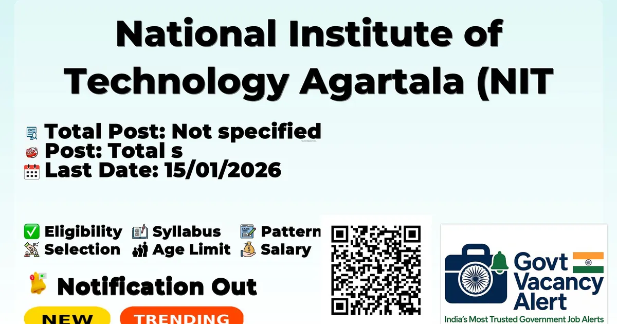 National Institute of Technology Agartala (NIT Agartala) has released an official notification for the recruitment of Professor Posts. Interested and eligible candidates can apply Offline through the official NIT Agartala website. The last date to submit the application form is 15-01-2026. In this article, you’ll find the NIT Agartala Professor Posts recruitment details, including eligibility criteria, age limit, salary structure, selection process, application steps, and direct links to the official notification and Offline application form.