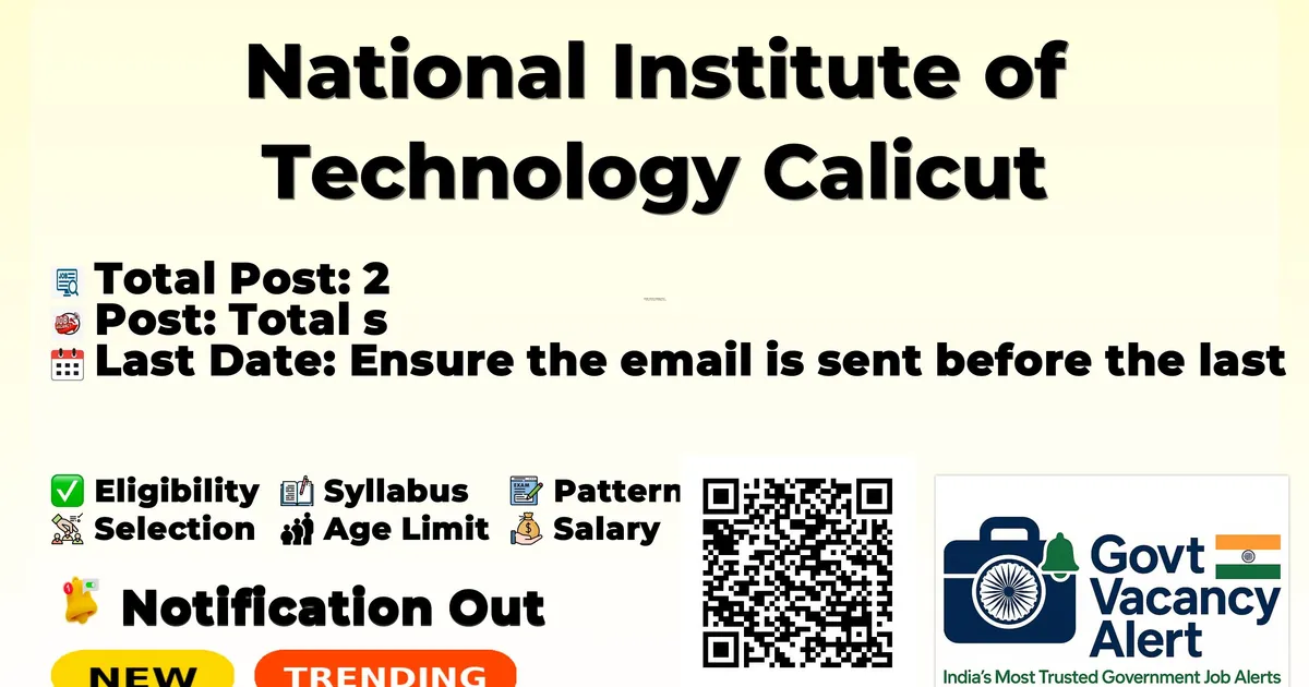 National Institute of Technology Calicut (NIT Calicut) Recruitment 2026: National Institute of Technology Calicut has released the official notification for 2 JRF, Project Intern and More, inviting applications from eligible candidates. This recruitment provides an excellent opportunity for candidates seeking government jobs.