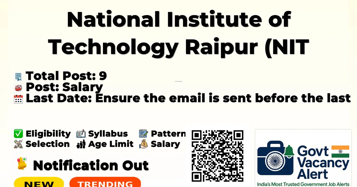 National Institute of Technology Raipur (NIT Raipur) Project Associate, Intern and More Notification 2026 has been released on the official website of National Institute of Technology Raipur. A total of 9 vacancies have been announced through the NIT Raipur Project Positions Recruitment 2026.
