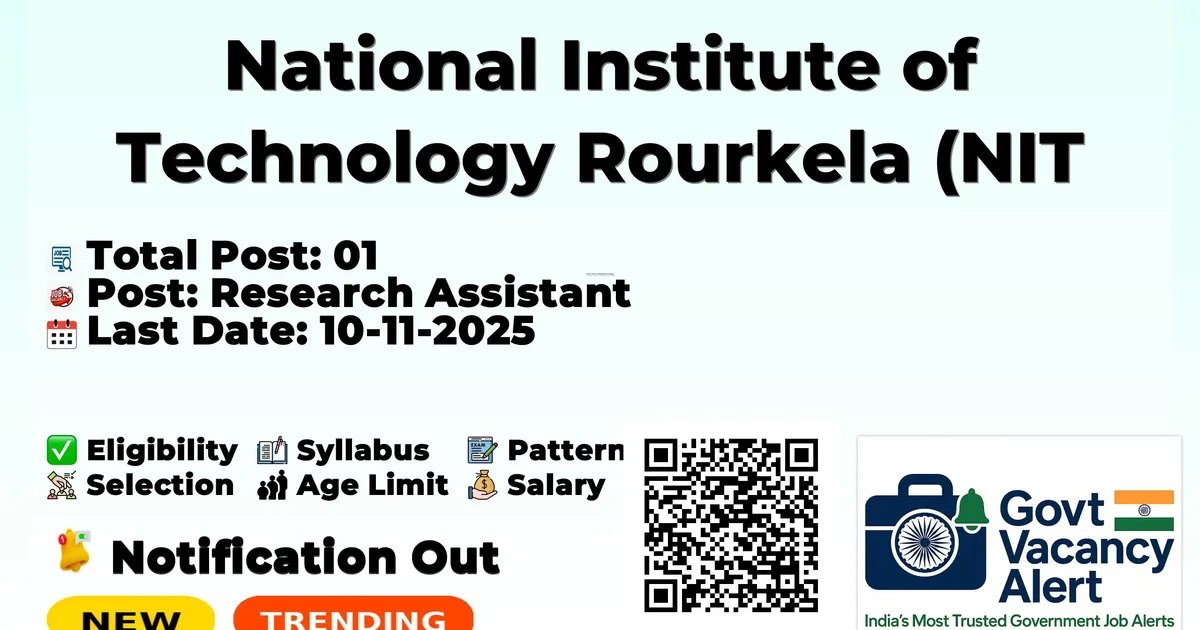 National Institute of Technology Rourkela (NIT Rourkela) has released an official notification for the recruitment of 01 Research Assistant Posts. Interested and eligible candidates can apply Offline through the official NIT Rourkela website. The last date to submit the application form is 10-11-2025. In this article, you’ll find the NIT Rourkela Research Assistant Posts recruitment details, including eligibility criteria, age limit, salary structure, selection process, application steps, and direct links to the official notification and Offline application form.