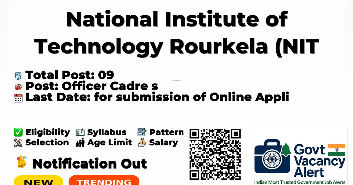 National Institute of Technology Rourkela (NIT Rourkela) has released an official notification for the recruitment of 09 Officer Cadre Posts. Interested and eligible candidates can apply Online through the official NIT Rourkela website. The last date to submit the application form is 19-02-2026. In this article, you’ll find the NIT Rourkela Officer Cadre Posts recruitment details, including eligibility criteria, age limit, salary structure, selection process, application steps, and direct links to the official notification and Online application form.