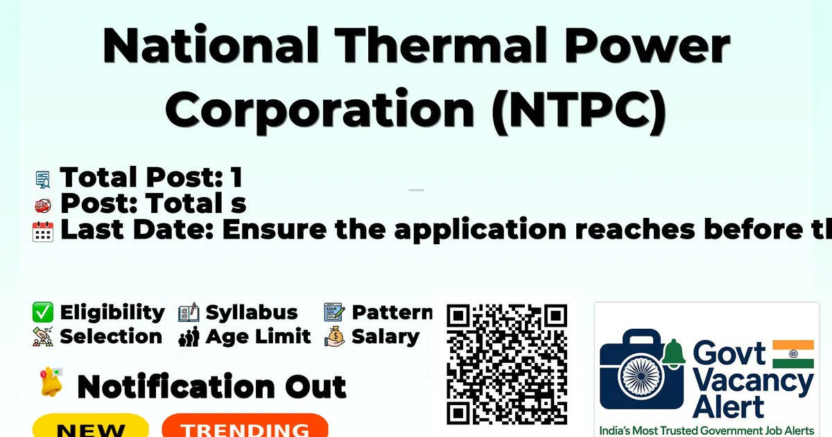 National Thermal Power Corporation (NTPC) has officially released a notification for the recruitment of 1 Chairman & Managing Director Posts. This recruitment drive offers a great opportunity for candidates looking for government jobs. Interested and eligible candidates can download the application form from the official website and submit it offline.