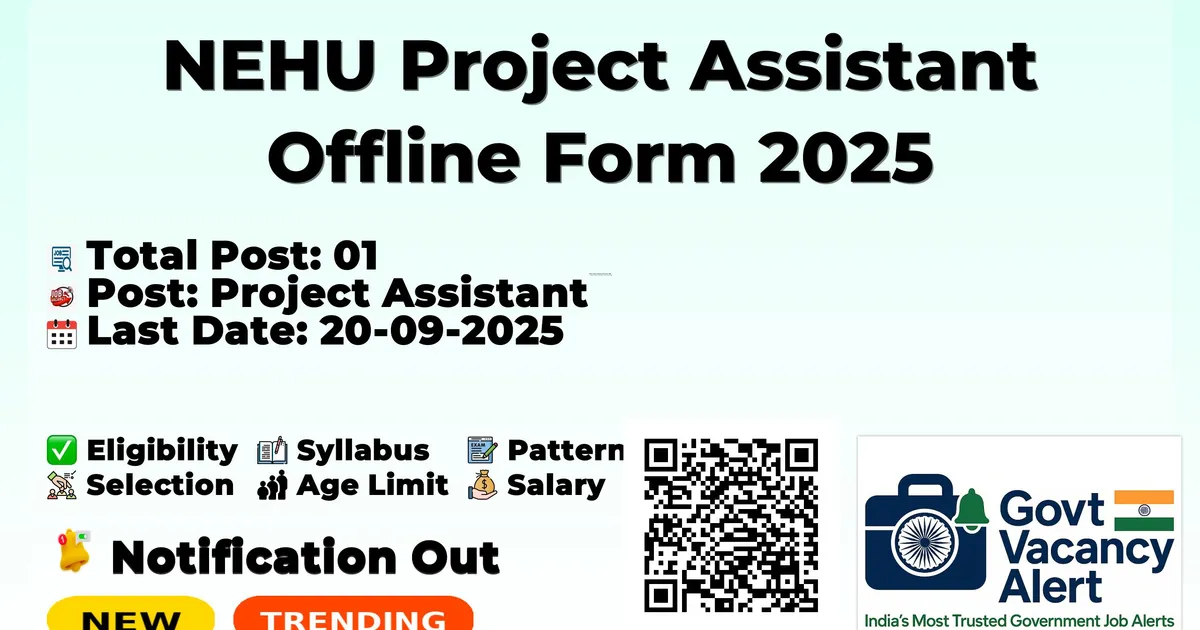 The North Eastern Hill University (NEHU) Recruitment 2025 for 01 posts of Project Assistant. Candidates with B.Tech/B.E Can Apply Offline. The Offline application opens on 04-09-2025, and closes on 20-09-2025. The candidate shall apply Offline through NEHU website, nehu.ac.in.