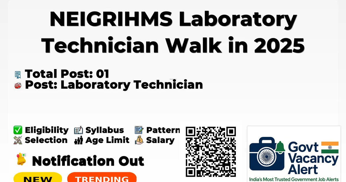 North Eastern Indira Gandhi Regional Institute of Health and Medical Sciences (NEIGRIHMS) Recruitment 2025 for 01 posts of Laboratory Technician. Candidates with BMLT Can attend the walkin. The Walk-in on 27-10-2025. For detailed information please visit NEIGRIHMS official website, neigrihms.gov.in.