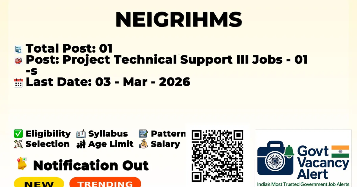 The North Eastern Indira Gandhi Regional Institute of Health and Medical Sciences (NEIGRIHMS) has officially released the notification to fill the vacancies of 01 Project Technical Support III Posts. Interested and eligibile candidates can use this opportunity to apply for these posts before the last date of application. Candidates who have completed their Any Degree, Post-graduation can apply for the NEIGRIHMS Notification 2026. The interested applicants can attend the walk-in interview. Here we have mentioned the education details, age limit, selection process, application fee, salary, and how to apply for these posts before the deadline. The application dates have already begun.