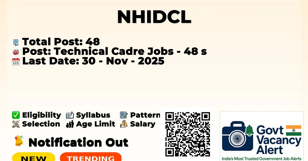 The National Highways & Infrastructure Development Corporation Limited (NHIDCL) has officially released the notification to fill the vacancies of 48 Technical Cadre Posts. Interested and eligibile candidates can use this opportunity to apply for these posts before the last date of application. Candidates who have completed their B.E./B. Tech in Civil Engineering can apply for the NHIDCL Notification 2025. The interested applicants can apply in online mode. Here we have mentioned the education details, age limit, selection process, application fee, salary, and how to apply for these posts before the deadline. The application dates have already begun.