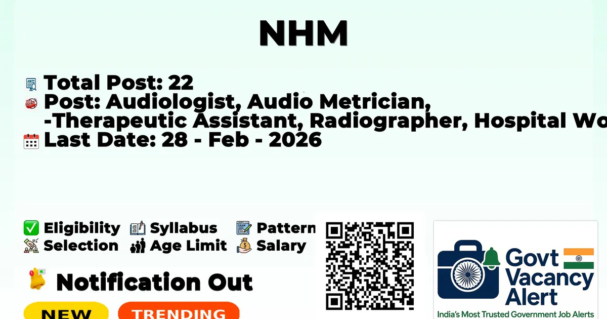 NHM — Audiologist, Audio Metrician, Therapeutic Assistant, Radiographer, Hospital Worker Jobs - 22 Posts
