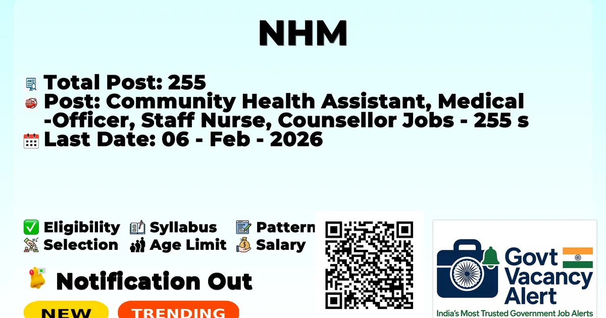 NHM — Community Health Assistant, Medical Officer, Staff Nurse, Counsellor Jobs - 255 Posts
