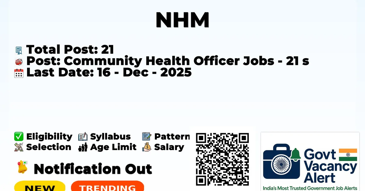 The District Health & Family Welfare Society, Bishnupur (DHFWS Bishnupur) has officially released the notification to fill the vacancies of 21 Community Health Officer Posts. Interested and eligibile candidates can use this opportunity to apply for these posts before the last date of application. Candidates who have completed their B.Sc Nursing, GNM, and BAMS can apply for the DHFWS Bishnupur Jobs 2025. The interested applicants can attend the walk-in interview. Here we have mentioned the education details, age limit, selection process, application fee, salary, and how to apply for these posts before the deadline. The application dates have already begun.