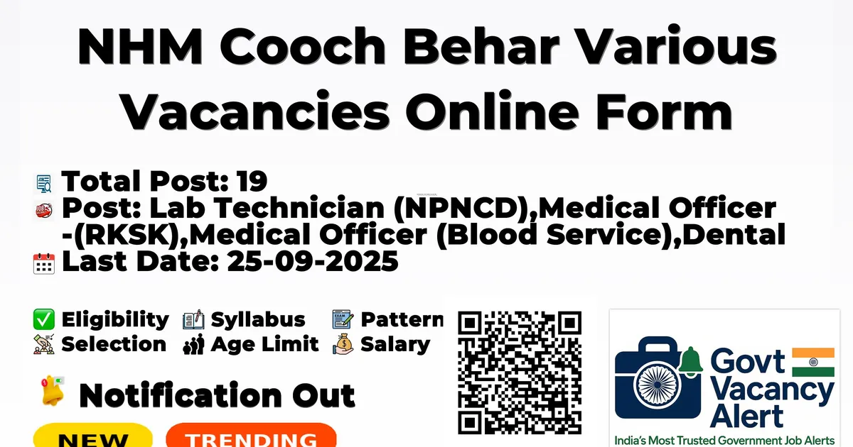 The NHM Cooch Behar Lab Technician, Medical Office and More Recruitment 2025 Notification PDF has been released on 13-09-2025 at coochbehar.gov.in. Check the complete job details, vacancy, age limit, application fee, selection process and how to apply from the article. You can Check all Latest Sarkari Result Updates of All Central Government Jobs and State Government Jobs.