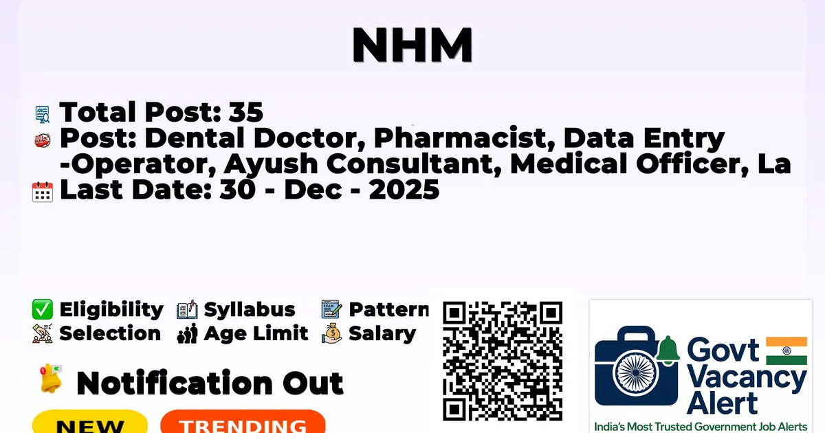 NHM — Dental Doctor, Pharmacist, Data Entry Operator, Ayush Consultant, Medical Officer, Lab Technician and Other Jobs - 35 Posts