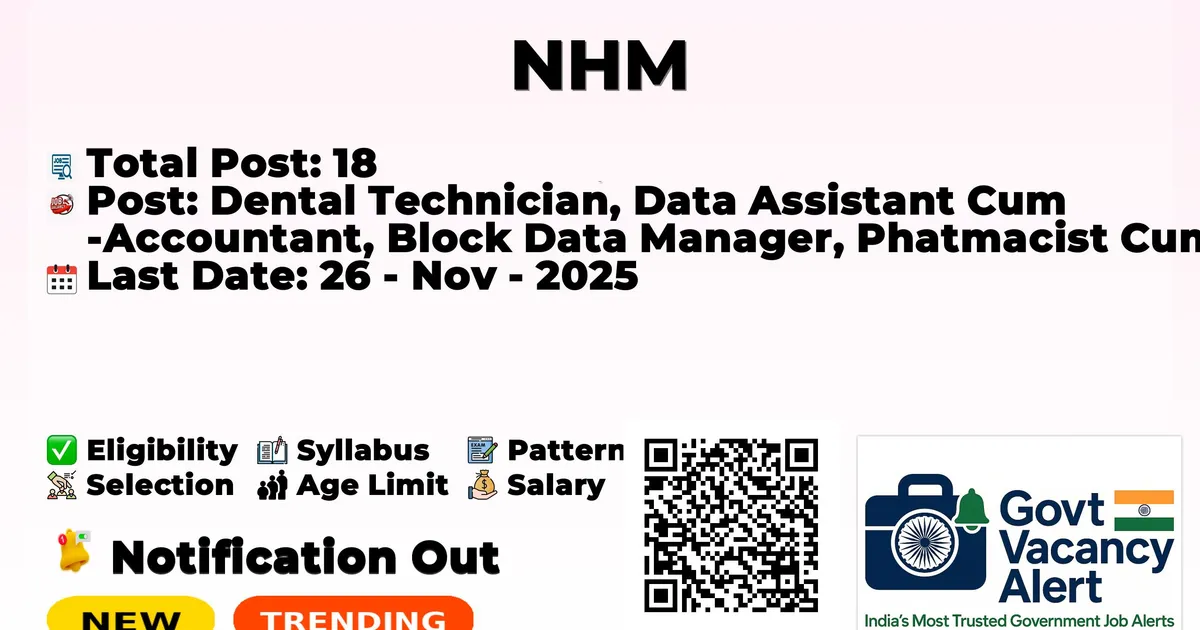 NHM — Dental Technician, Data Assistant Cum Accountant, Block Data Manager, Phatmacist Cum Logistic Accountant, Doctor and Other Jobs - 18 Posts
