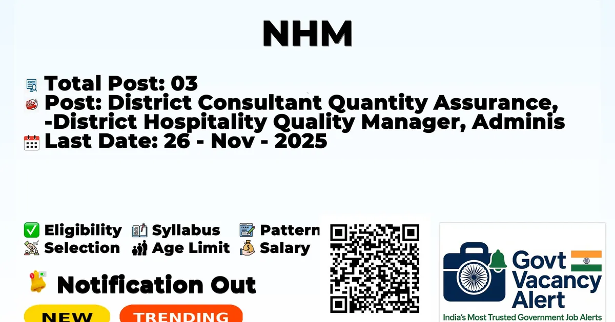 District Consultant Quantity Assurance, District Hospitality Quality Manager, Administrative Cum Programme Assistant Jobs - 03 Posts