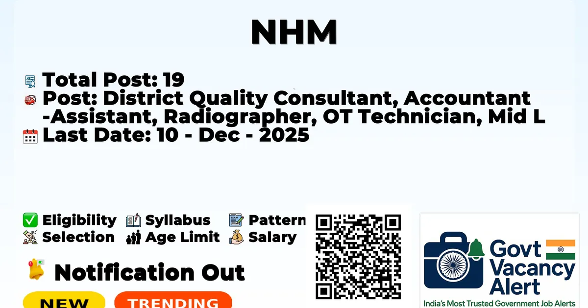 NHM - District Quality Consultant, Accountant Assistant, Radiographer, OT Technician, Mid Level Health Provider and Other Jobs - 19 Posts Recruitment 2025 | Latest Govt Jobs, Sarkari Naukri