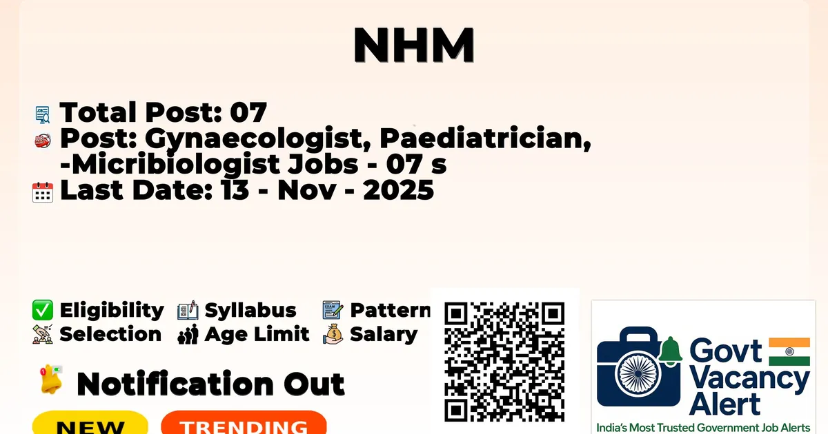 NHM — Gynaecologist, Paediatrician, Micribiologist Jobs - 07 Posts