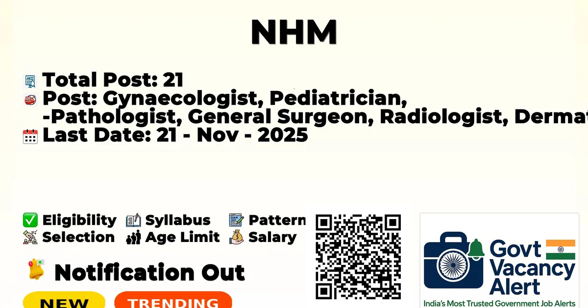 NHM — Gynaecologist, Pediatrician, Pathologist, General Surgeon, Radiologist, Dermatologist Jobs - 21 Posts
