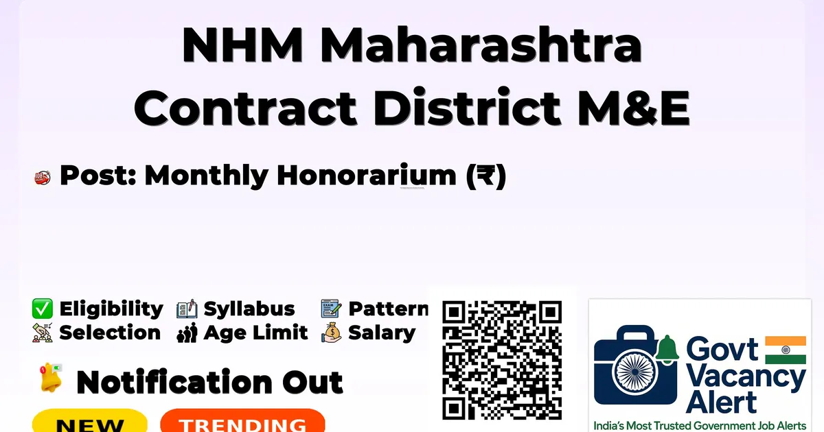 National Health Mission Maharashtra (NHM Maharashtra) has released an official notification for the recruitment of 13 Contract District M&E Officer Posts. Interested and eligible candidates can apply Offline through the official NHM Maharashtra website. The last date to submit the application form is 20-12-2025. In this article, you’ll find the NHM Maharashtra Contract District M&E Officer Posts recruitment details, including eligibility criteria, age limit, salary structure, selection process, application steps, and direct links to the official notification and Offline application form.