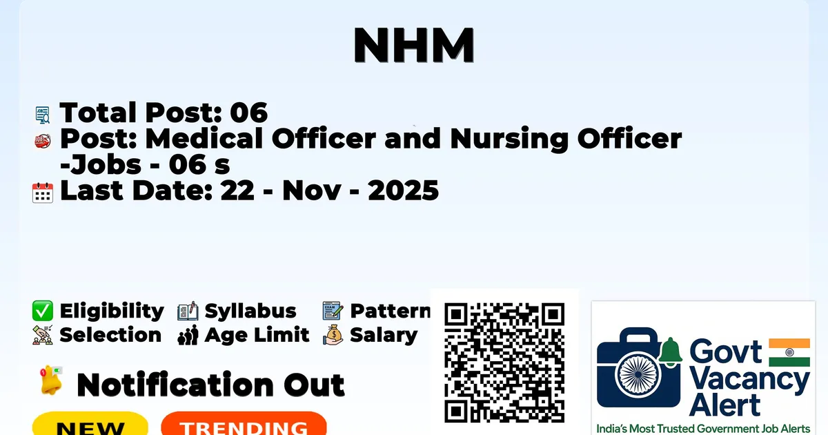 NHM — Medical Officer and Nursing Officer Jobs - 06 Posts