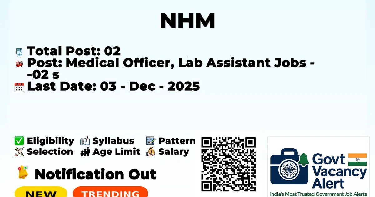 NHM — Medical Officer, Lab Assistant Jobs - 02 Posts
