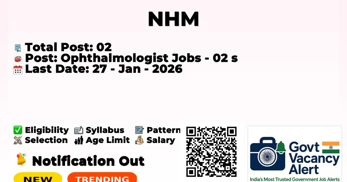 National Health Mission Arunachal Pradesh (NHM Arunachal Pradesh) has declared the latest job notification for 2026. To fill up the 02 vacancies for Ophthalmologist Jobs. Those candidates who have qualified in the MBBS, MD/ MS, DNB can use this chance and apply for the NHM Arunachal Pradesh Recruitment 2026. Here we mentioned more about the age limit, selection process, salary structure, education details, application fee, and how to apply for these posts.