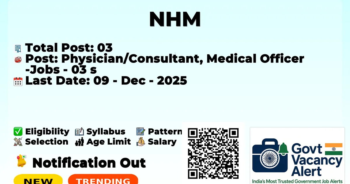 NHM — Physician/Consultant, Medical Officer Jobs - 03 Posts