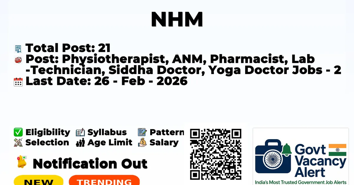 NHM — Physiotherapist, ANM, Pharmacist, Lab Technician, Siddha Doctor, Yoga Doctor Jobs - 21 Posts