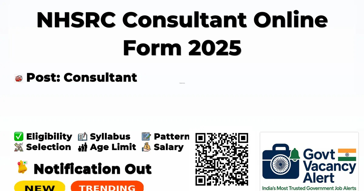 National Health Systems Resource Centre (NHSRC) has released an official notification for the recruitment of Consultant Posts. Interested and eligible candidates can apply Online through the official NHSRC website. The last date to submit the application form is 29-12-2025. In this article, you’ll find the NHSRC Consultant Posts recruitment details, including eligibility criteria, age limit, salary structure, selection process, application steps, and direct links to the official notification and Online application form.