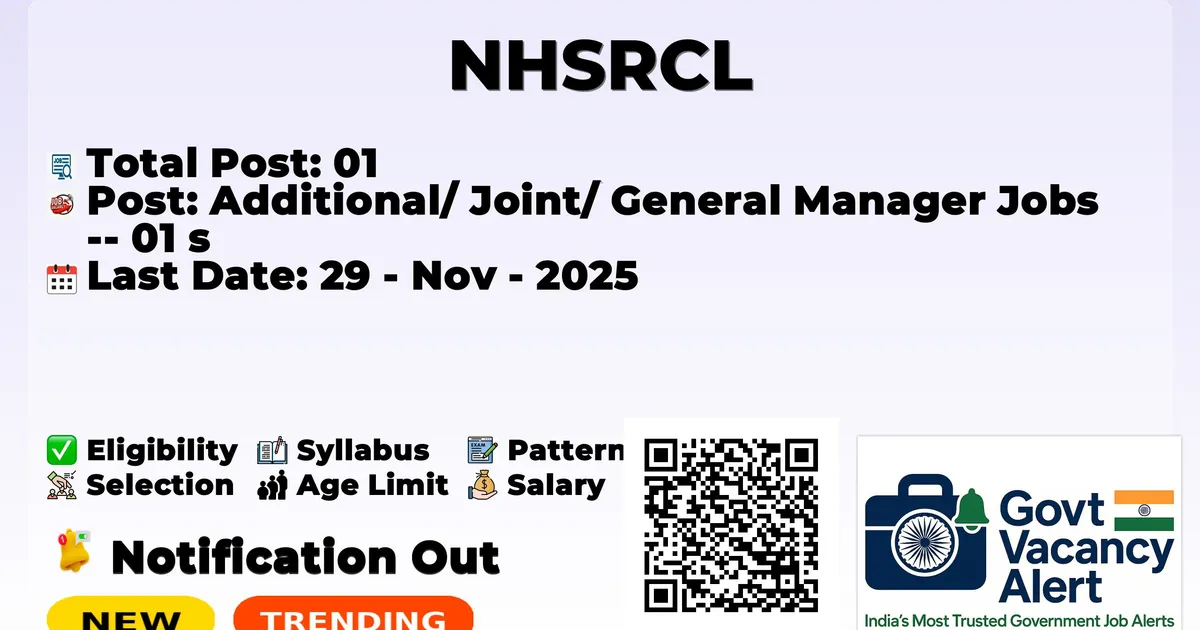 The National High Speed Rail Corporation Limited (NHSRCL) has officially released the notification to fill the vacancies of 01 Additional/ Joint/ General Manager Posts. Interested and eligibile candidates can use this opportunity to apply for these posts before the last date of application. Candidates who have completed their B.E./B. Tech and MBA can apply for the NHSRCL Jobs 2025. The interested applicants can apply in offline mode. Here we have mentioned the education details, age limit, selection process, application fee, salary, and how to apply for these posts before the deadline. The application dates have already begun.