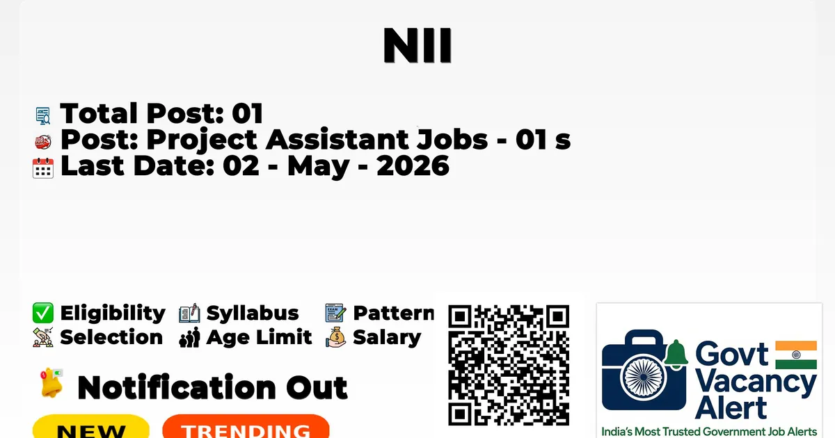 NII — Project Assistant Jobs - 01 Posts
