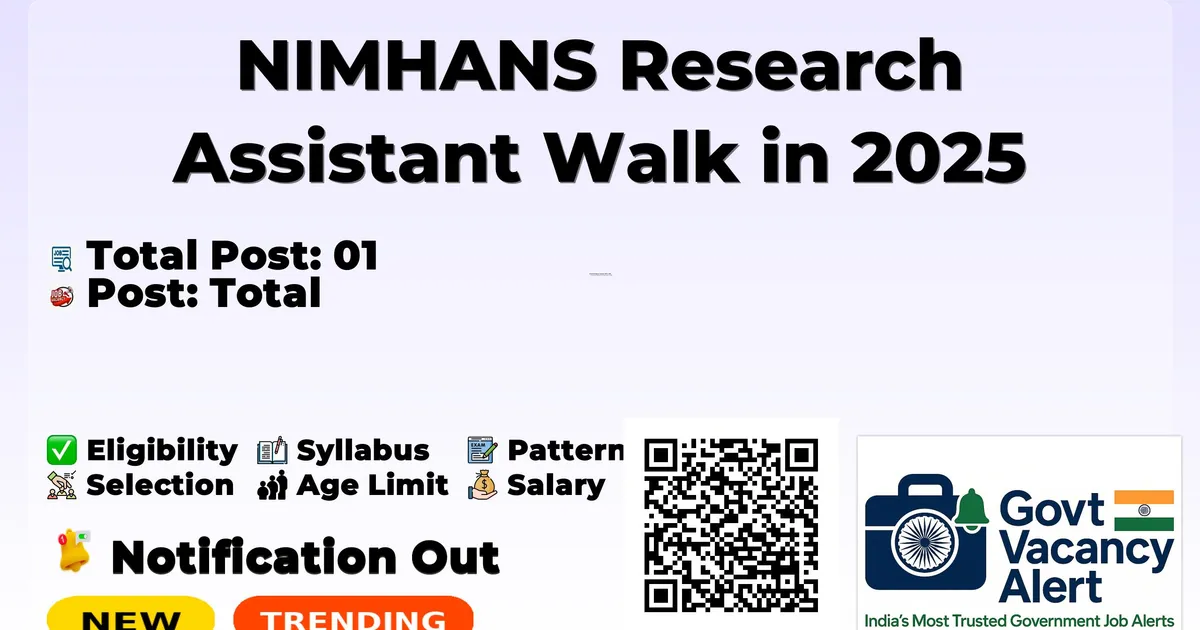 NIMHANS Research Assistant Recruitment 2025 Vacancy Details
