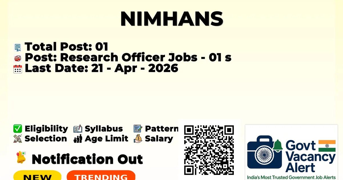 National Institute of Mental Health and Neuro Sciences (NIMHANS) has announced the official notification for 2026. To fill up the various vacancies for Research Officer Jobs. Those candidates who have qualified in the NIMHANS Recruitment 2026. Here we included the age limit, selection process, salary structure, education details, applciation fee, and how to apply for these posts.