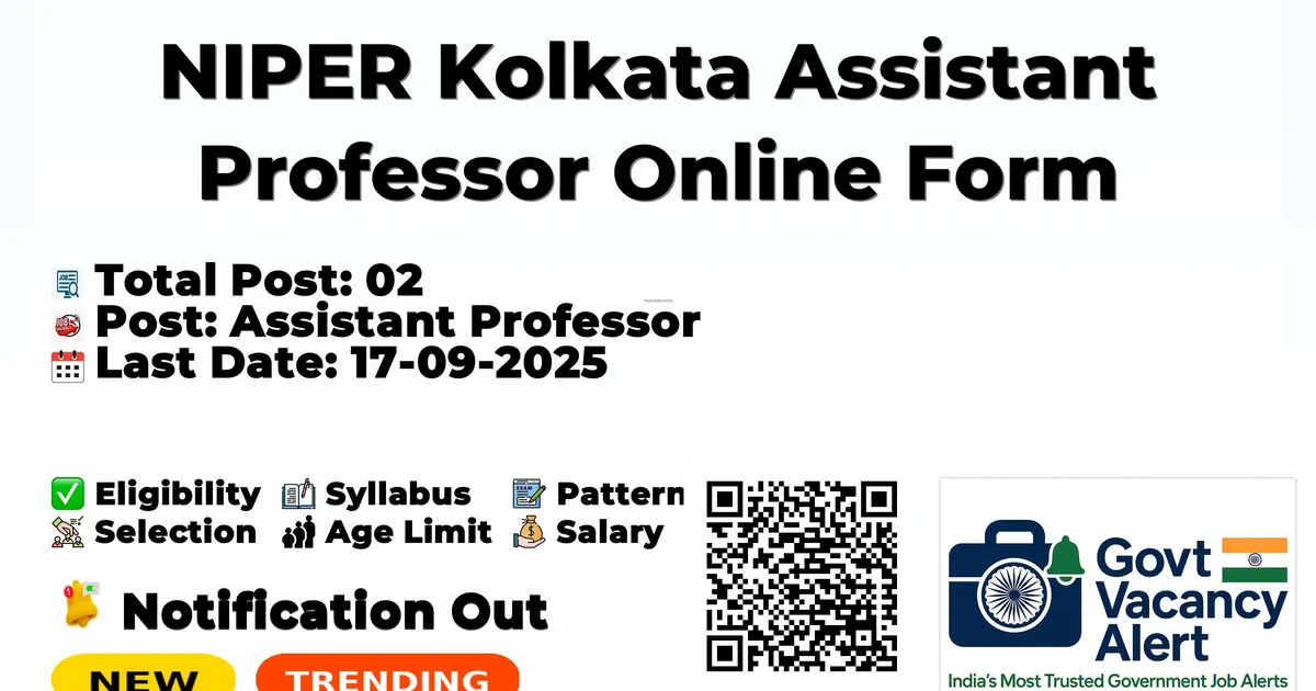 The NIPER Kolkata Assistant Professor Recruitment 2025 Notification PDF has been released on 12-09-2025 at niperkolkata.edu.in. Check the complete job details, vacancy, age limit, application fee, selection process and how to apply from the article. You can Check all Latest Sarkari Result Updates of All Central Government Jobs and State Government Jobs.